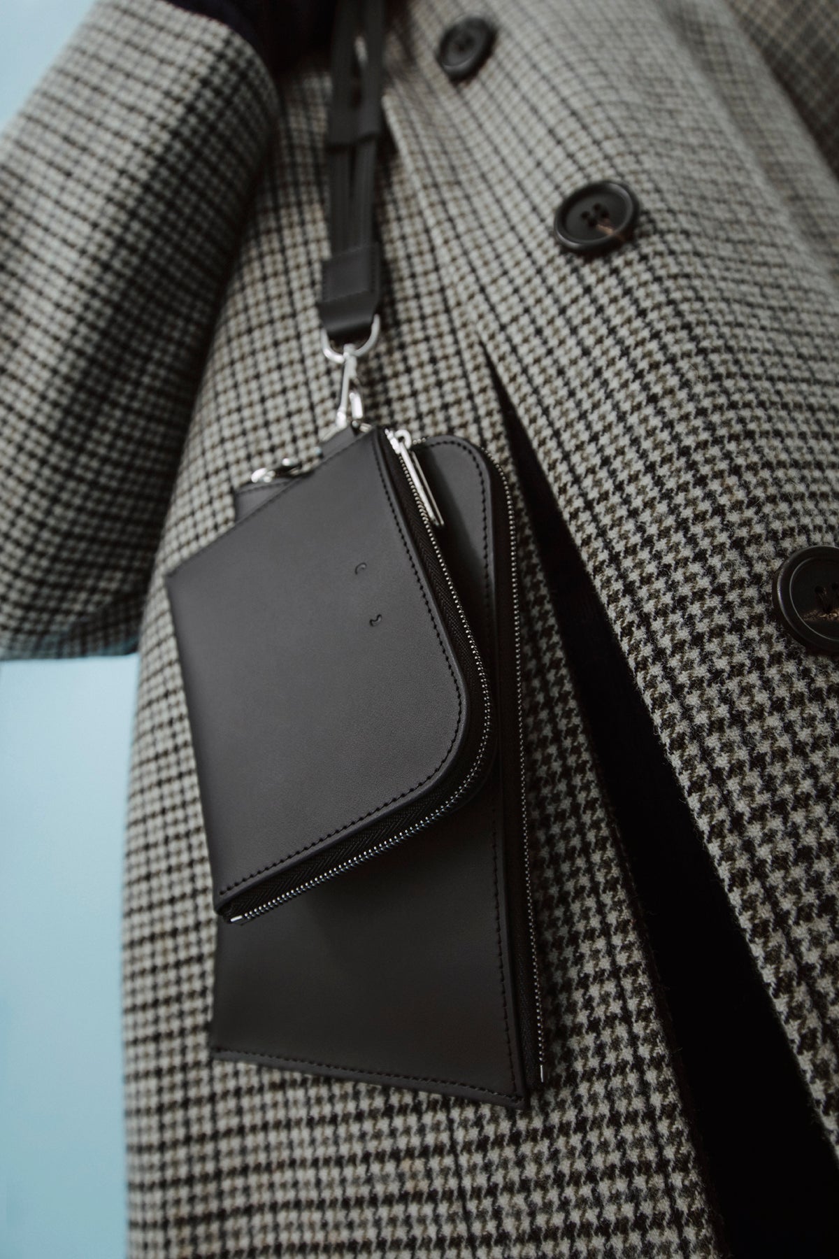 One inspiration for the ensemble of products that can be worn very close to the body is certainly the realisation that the mobile phone is moving ever closer to us in many respects. One could get the impression that it is becoming a new limb. If this is the case, we would like to offer a beautiful, restrained form that also integrates a wallet.
